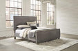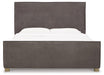 With a contemporary silhouette and downtown flair, this king upholstered panel bed seamlessly fits in with existing modern decor. Its clean-lined profile and tailored slate gray upholstery give an urban sophistication. This chic bed also features a double flange welt around the perimeter for a polished look. And with a USB charging port conveniently located on each side of the headboard, it's right up to speed with your high-tech lifestyle.