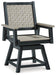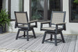 On-trend stylings take to the outdoors with this swivel dining chair. Its two-tone look in driftwood and black has a laid-back luxe appeal. High design meets durability with this outdoor chair's weather-resistant HDPE construction—a stunning display of form and function.