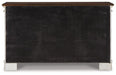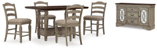 This dining package adds understated beauty to any dining space with its traditional cottage design. The table's outstanding two-tone finish features an antiqued gray with a rich deep walnut brown top. With this set, your multi-use dining area gets a simple yet stylish upgrade.