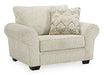 Blending classic elements like sumptuous flared roll arms with tailored box cushions and tapered black feet for up-to-date appeal, this oversized chair exudes that transitional aesthetic that looks and feels right at home. Offering plenty of room for everyone to make themselves comfortable, this large-scale chair is wrapped in a soft, chunky weave fabric loaded in texture. Light and lovely ivory upholstery makes for such an easy-breezy blend.