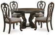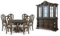 From its ornamental appliques to its large scale, this dining package makes a bold statement. With ornate details, the opulent set wows with stunning style. The look is timeless. The feel? Right at home.