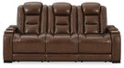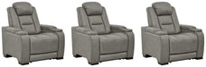 Reserved for him and made for her, this power reclining sofa and loveseat set in gray delivers all the comfort and style you could ask for. Inspired by sports car interiors, the seating area is covered in real leather for your pleasure, with a “perforated automotive†treatment for that much more appeal. Positioned at your fingertips, the advanced one-touch power control puts you in the driver’s seat with everything from an Easy View™ power headrest and power lumbar support, to a USB port and wireless charging for your phone. Talk about fully loaded. And with integrated cup holders and hidden storage compartments under the posh, padded armrests, this designer power reclining package makes the most of every inch of space.