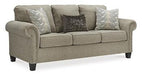 Sporting traditional elements including roll arms with nailhead trim, this sofa gives here-and-now relevance to a classic style. The lovely pewter shade of the textured chenille upholstery brings a relaxed sensibility. Mix in contrasting tapered legs for a striking look you're sure to love for years to come.