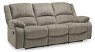 Built for luxury, this reclining sofa lets you kick back in reliable style. The thick, softly textured chenille upholstery provides a comfy surface on which to lounge. With bustle back construction and thickly cushioned armrests, this piece gives you the dependable support you need to unwind after a trying day.