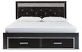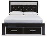 Rest easy. The luxurious look you’ve been dreaming of is yours for the taking, at a price sure to put you at ease. This queen upholstered panel bed with storage brings a sense of old Hollywood with a contemporary flair. A deep, dark finish, faceted chrome-tone accents and LED lighting exude Hollywood-chic style to the max. Padded windowpane stitching on the sleek, black upholstery infuses a sumptuous look that’s upscale and indulgent, and utterly on trend. Double drawers at the foot of the bed provide space-saving storage.