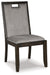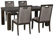 This dining set serves up clean-lined, contemporary style with a sleek, linear profile and rich espresso finish. Fresh elements, including a subtle geometric veneer inlay top and a floating effect Parsons leg, keep this set relevant and on trend. The drop-in leaf makes entertaining drop-in guests a breeze.