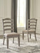 We love how the classic farmhouse ladderback chair gets a fresh makeover in this dining room chair. Understated yet rich with character, the antiqued gray finish allows the wood’s natural grain to shine through. Crisp, clean and neutral, the cushioned seat upholstery is a subtle complement.