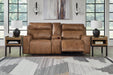 Masterful in its interpretation of modern luxury, this power reclining loveseat with console is sleekly tailored in top-grain leather. It’s rich to the touch in tones of warm brown, inviting you to indulge in one-touch reclining. Design details polish off this lavish leather loveseat. Subtle stitching accents and clean-lined track arms create contemporary character, inviting high-brow style into your home.