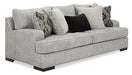 An indulgent choice with deep seats crafted for ultra-plush softness, this designer sofa is the ideal merger of modern flair and classic staying power. If you love a touch of texture, you’re sure to appreciate this sofa’s gorgeous gray upholstery with subtle chevron effect. Posh toss pillows layered over the loose back cushions perfect the richly relaxed aesthetic.