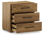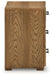 Taking an organic approach to a curated bedroom aesthetic, this warmly neutral nightstand has a natural appeal. Sleek bar pulls in a blackened iron finish accentuate the drawer fronts, providing subtle contrast to the clean-lined design. With its aura of casual refinement, this piece elevates the everyday in your restful retreat.