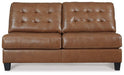 Bask in the beauty of this sectional. Reserved exclusively for those with an eye for fine contemporary design, this generously scaled sectional in auburn brown is dressed to impress in every way. Leather match upholstery provides incomparable comfort where it counts. Sleek track armrests, tufted box cushions and a sumptuous chaise are the embodiment of luxury.