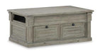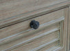 Put a simple twist on your approachable sense of style with this classically charming occasional table package. A glazed bisque finish covers the wire-brushed textural surfaces, with natural wood undertones bringing additional dimension. Blackened iron-tone hardware embellishes the drawer fronts, infusing these chic pieces with an air of traditional elegance.