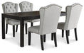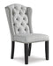 With its fashion-forward take on farmhouse styling, this 5-piece dining room table set is a feast for the senses. The table’s clean-lined Parsons styling is a timeless choice that works so well with wingback chairs. Deep button tufting enhances the luxurious look, designed to make gathering around the table an easy-elegant experience.